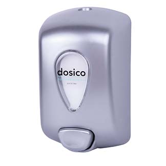 Soap dispenser made of 100% recyclable ABS plastic and with a polycarbonate visor.